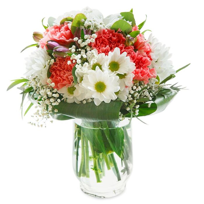 Enhance any occasion with our beautifully arranged bouquet featuring a soft palette of white and pink blooms, designed to captivate and enchant.